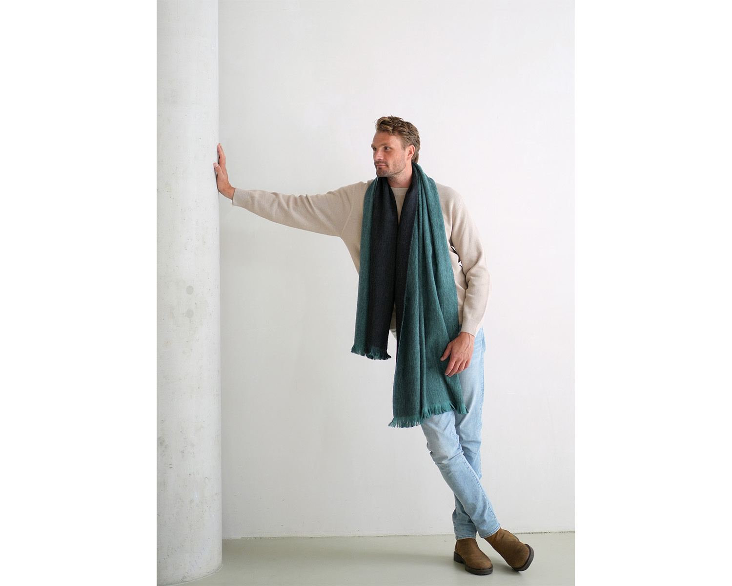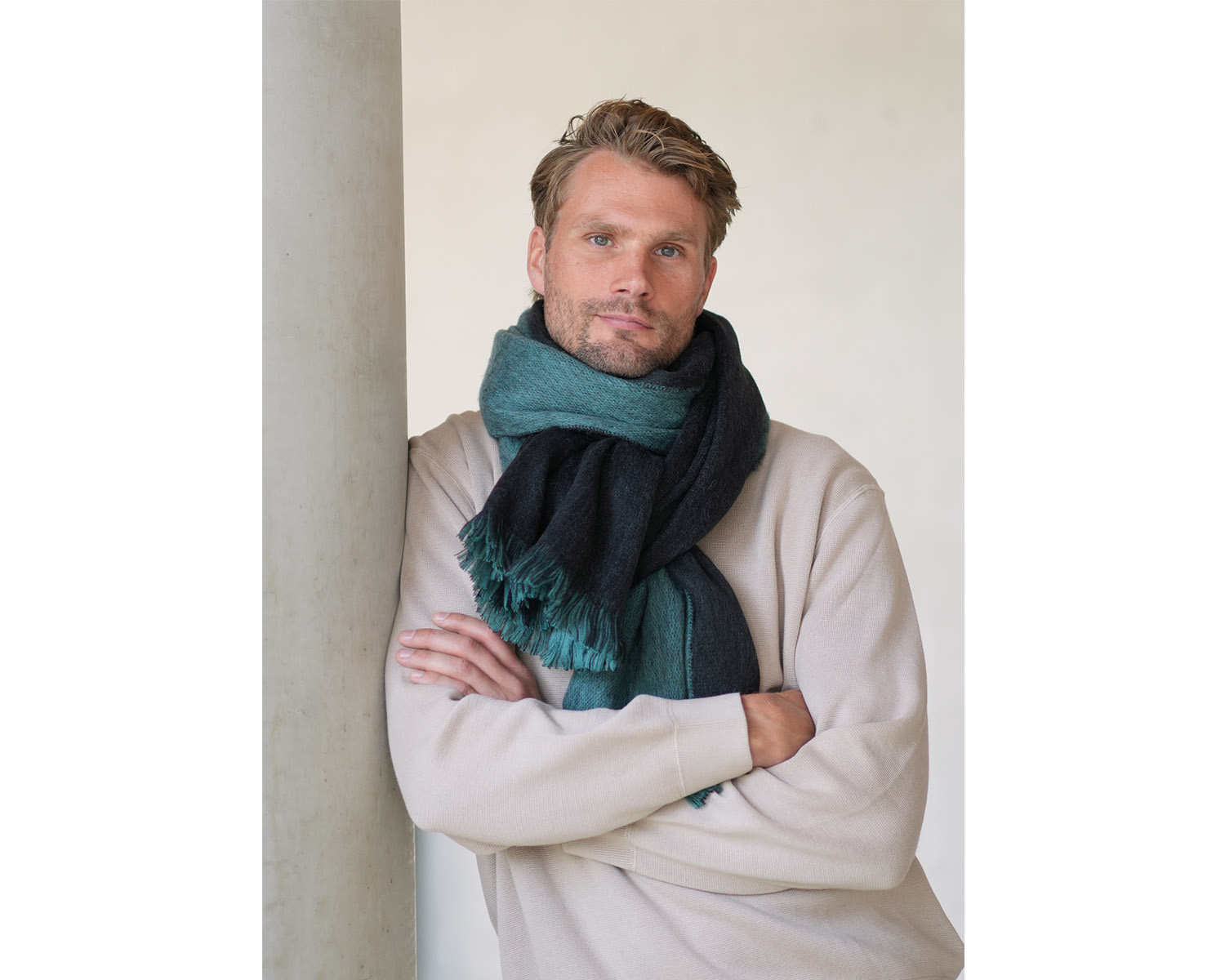 The DOBLE shawl is a two-tone piece with a different color on each side. With more volume than the SOLID due to a bit of extra wool.