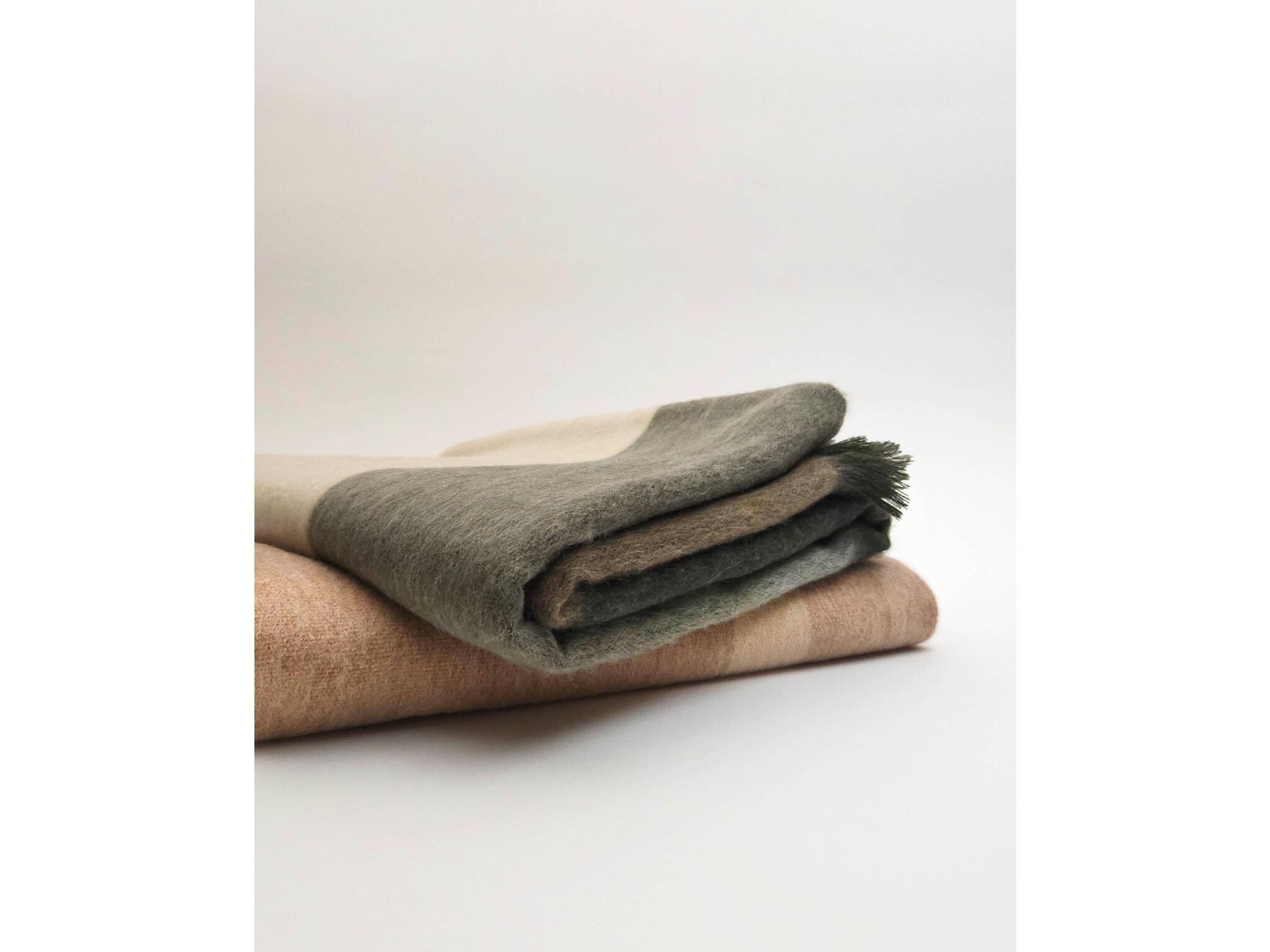 Geen zin om een jas te dragen? Deze SQUARED sjaal in matte beige en groene tonen is een perfecte oplossing voor het tussenseizoen.